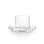 Skleněné šálky na cappuccino z kolekce Drop s podšálky inspirovanými jemným zvlněním hladiny kávy při dopadu kapky. Minimalistické šálky podtrhují čistotu materiálu, zatímco podšálky dodávají celku vizuální dynamiku.