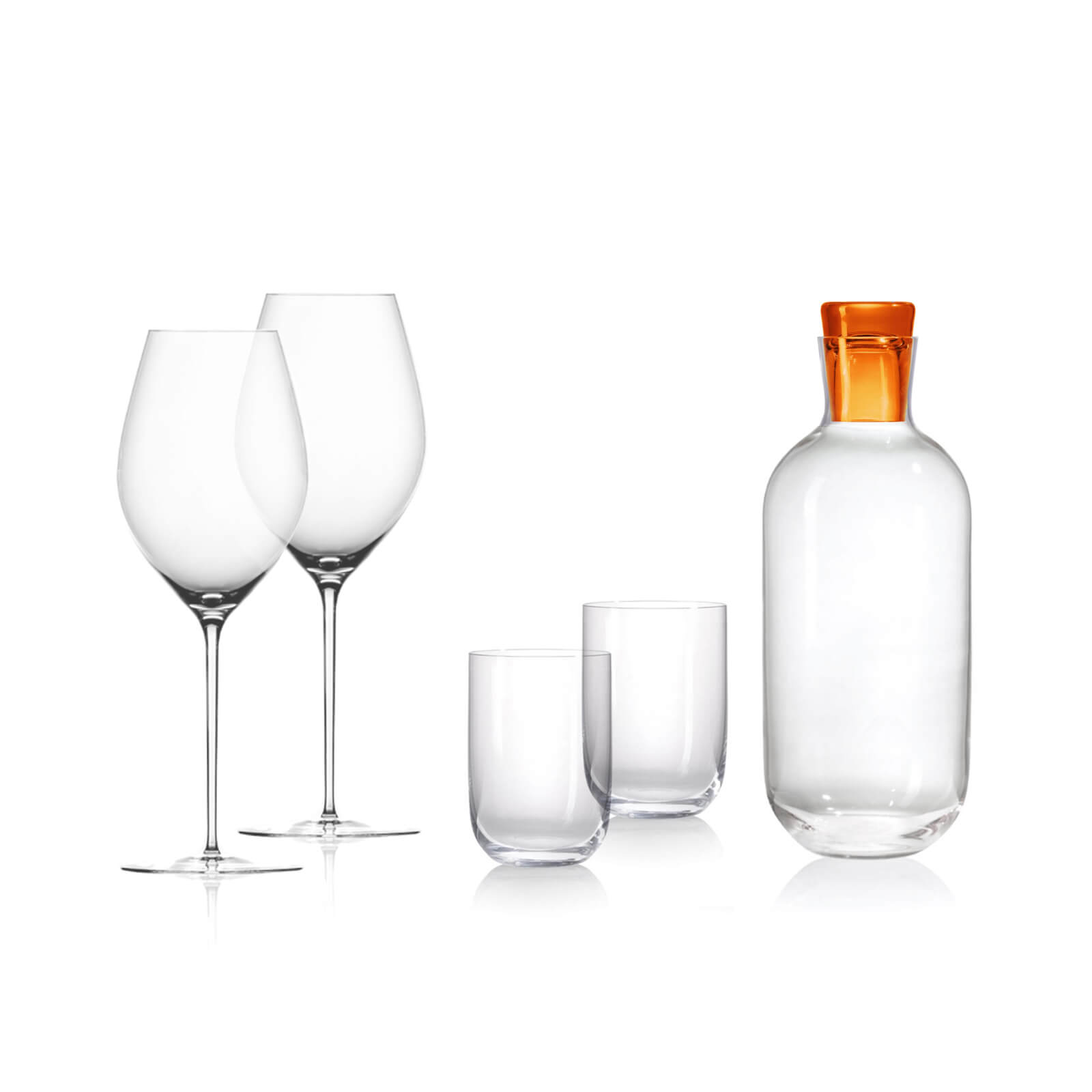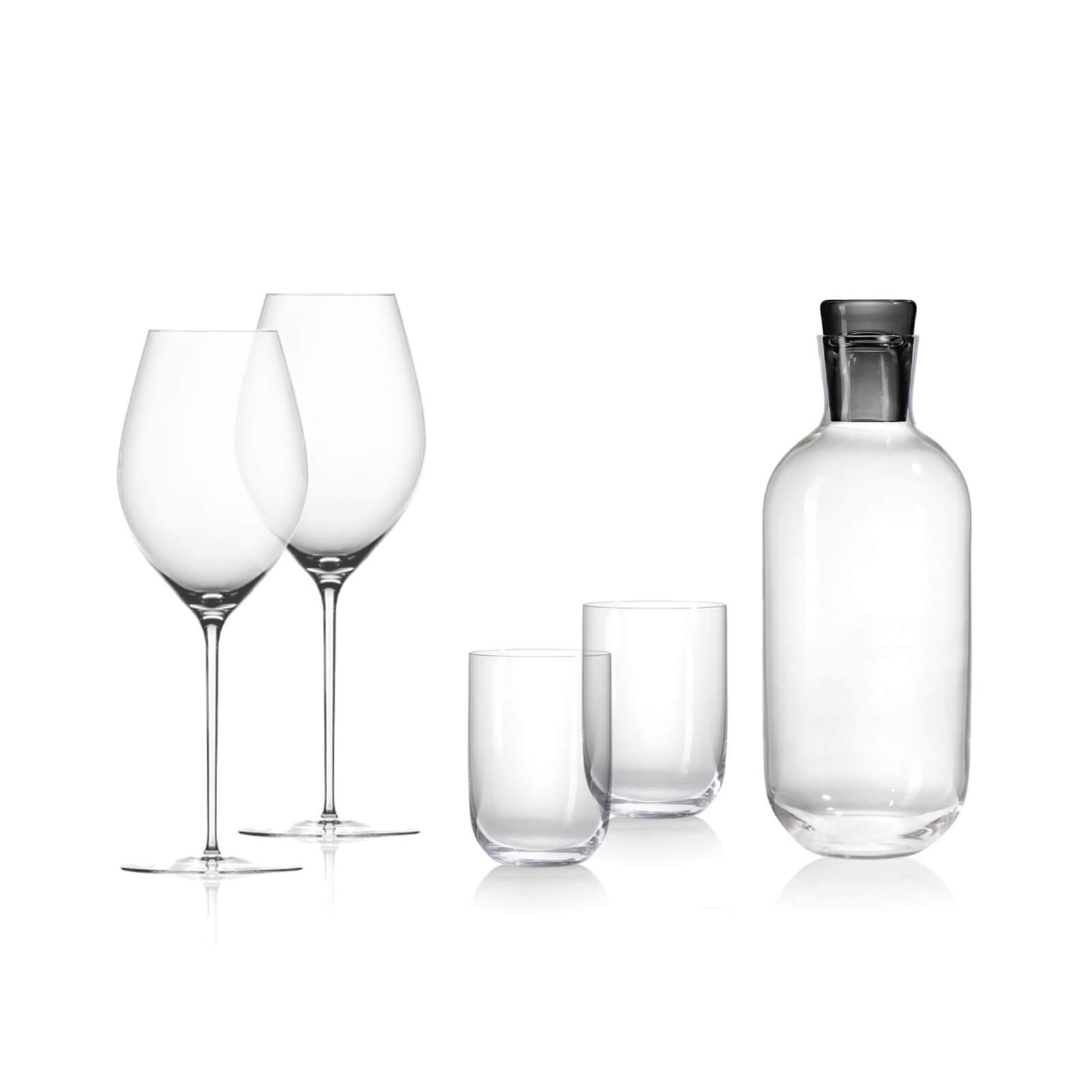 Láhev Vial, dvě sklenice Vial a dvě sklenice Telesto společně tvoří esteticky vyvážený set, ideální pro každodenní stolování i slavnostní příležitosti. Barevné akcenty dodávají kolekci nenápadnou individualitu a umožňují vytvořit kombinaci přesně podle vašeho stylu.