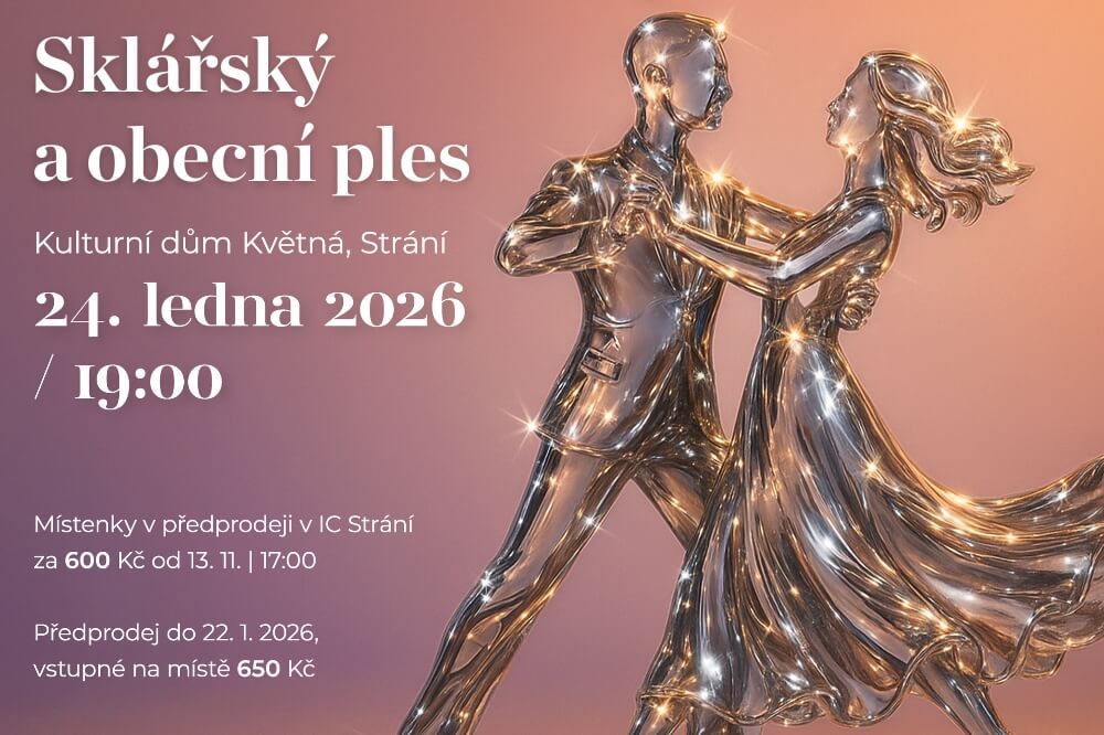 Po úspěšném obnovení tradice v roce 2025, kdy se po téměř třiceti letech opět otevřely dveře společného Sklářského a obecního plesu, vás Glasfabrik Květná a Obec Strání zvou na jeho další pokračování.